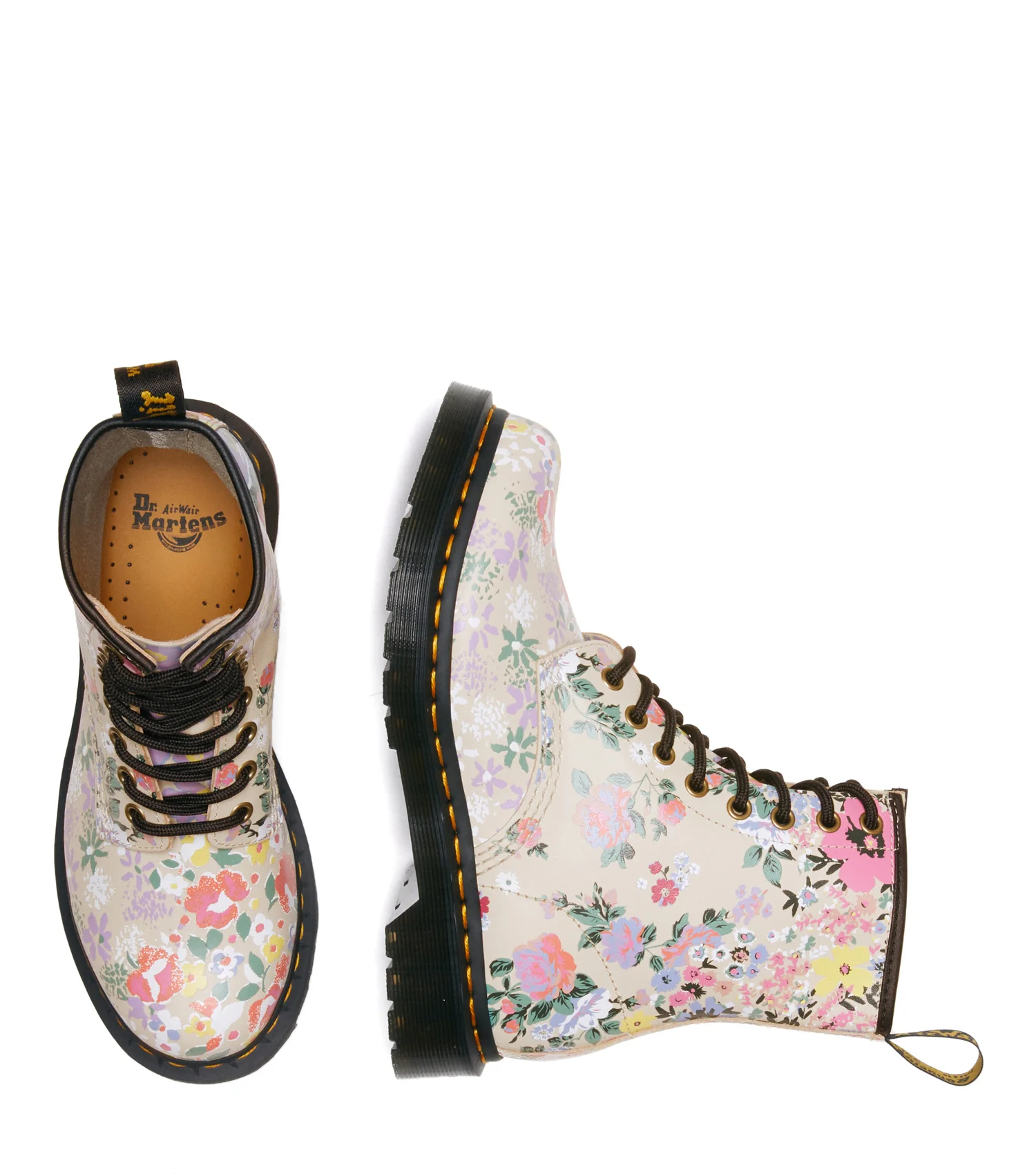 • Autres : Le modèle 1460 PASCAL FLORAL MASH UP est une interprétation unique de la célèbre chaussure 1460 de Dr. Martens, avec un motif floral audacieux et un confort exceptionnel pour un style classique revisité.